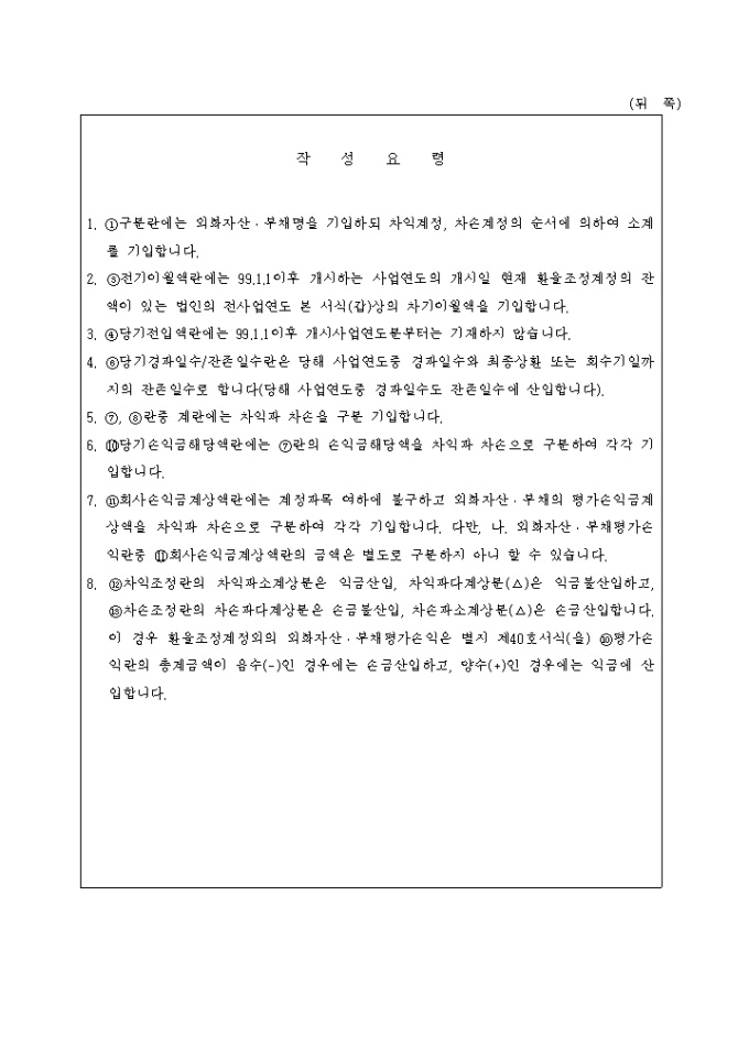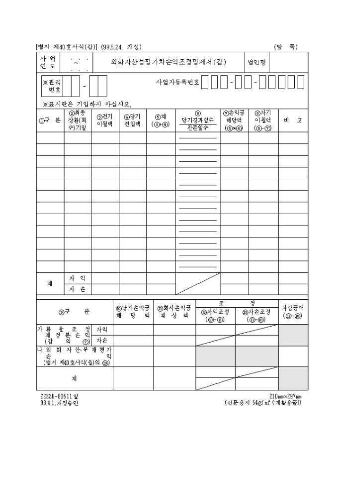 제40호(갑)외화자산등평가차손익조정명세서(갑)(1999.5.24. 개정)