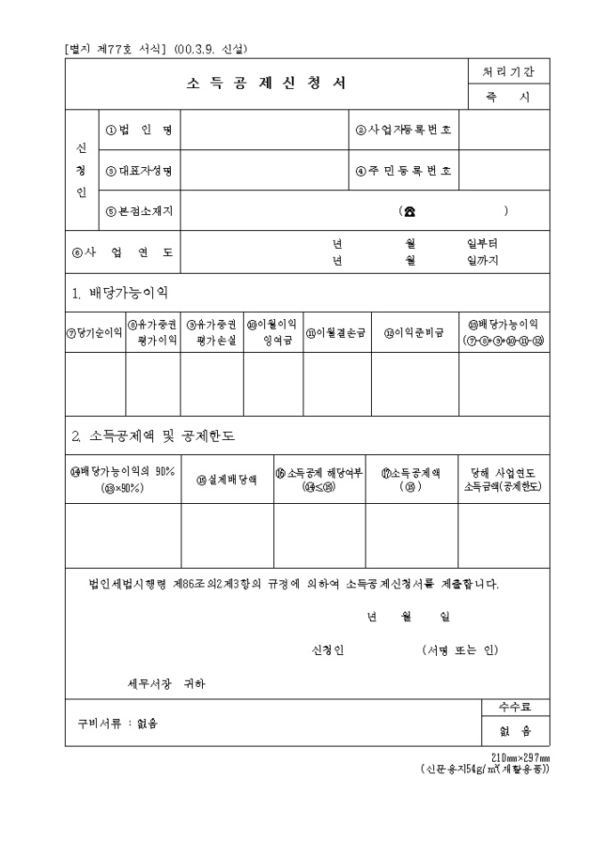 9,000원/월법인세법시행령 제86조의2제3항의 규정에 의하여 소득공제신청서를 제출할때 사용합니다.