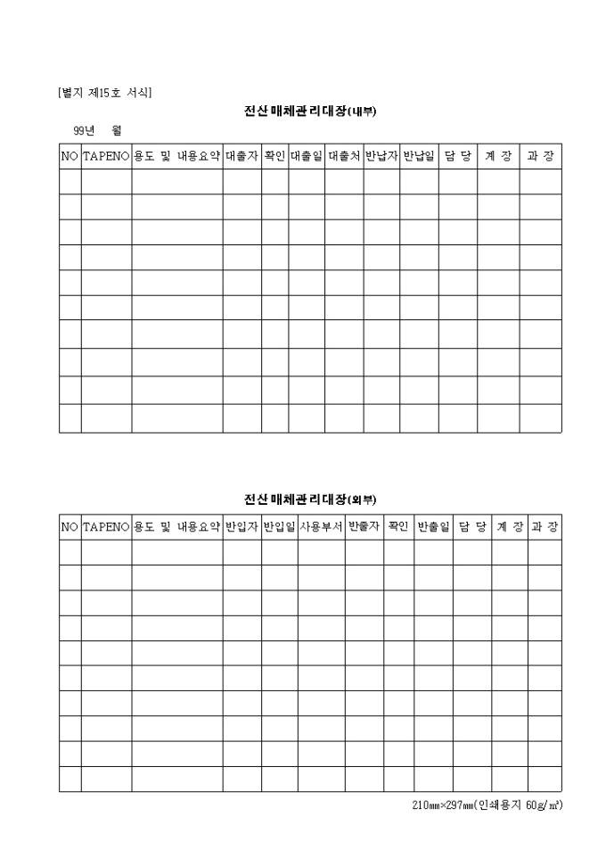 9,000원/월제15호 전산매체관리대장