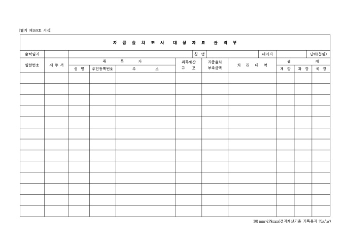 제169호 자금출처조사대상자료관리부