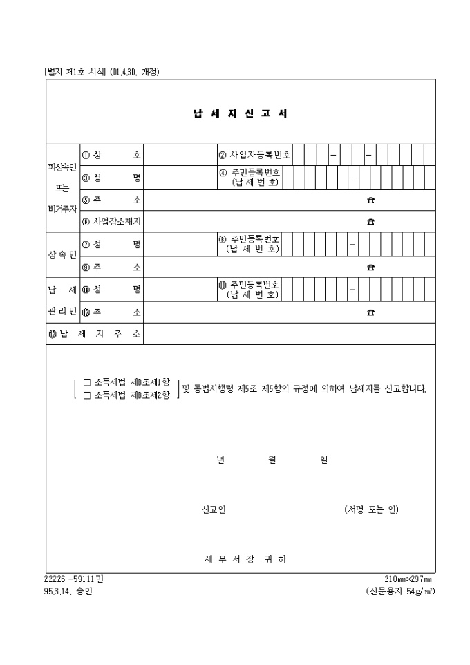 납세를 신고할때 사용하는 양식입니다.