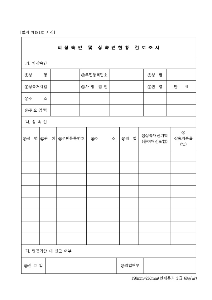 제191호 피상속인 및 상속인현황검토조서