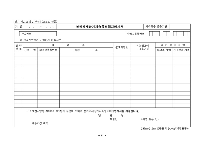 제21호의2 분리과세장기저축중도해지명세서(2000.4.3. 신설)