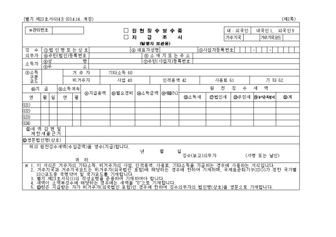 원천징수영수증.지급조서(제23호(4))(2003.4.14. 개정)