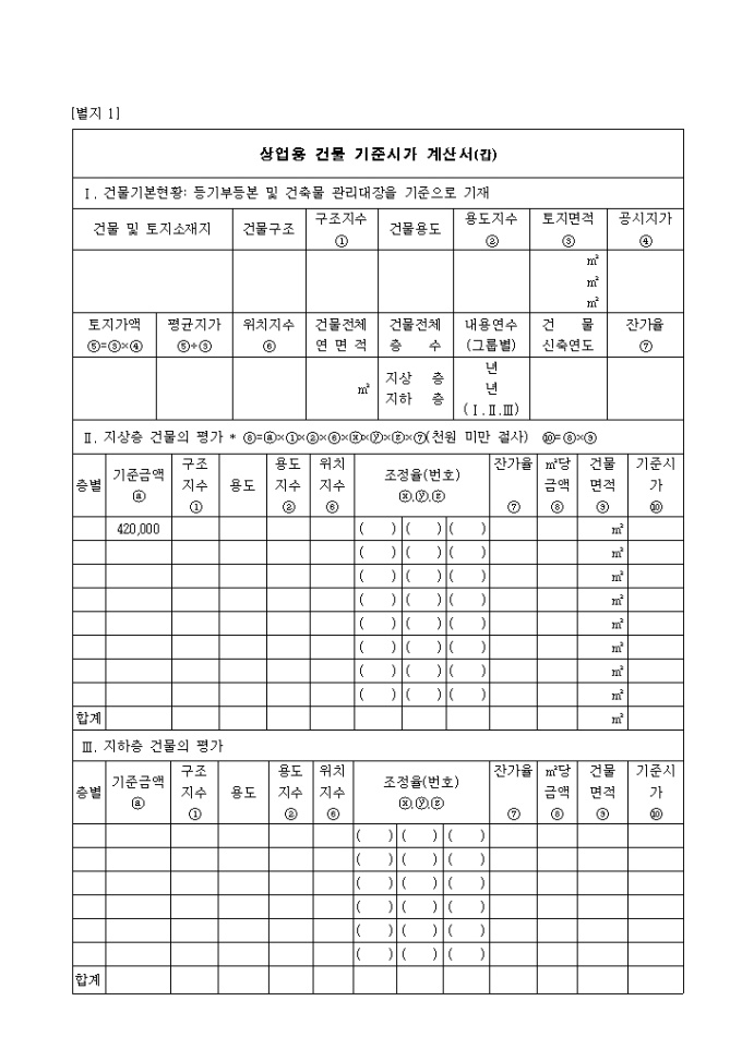 제1호 상업용건물기준시가계산서(갑)