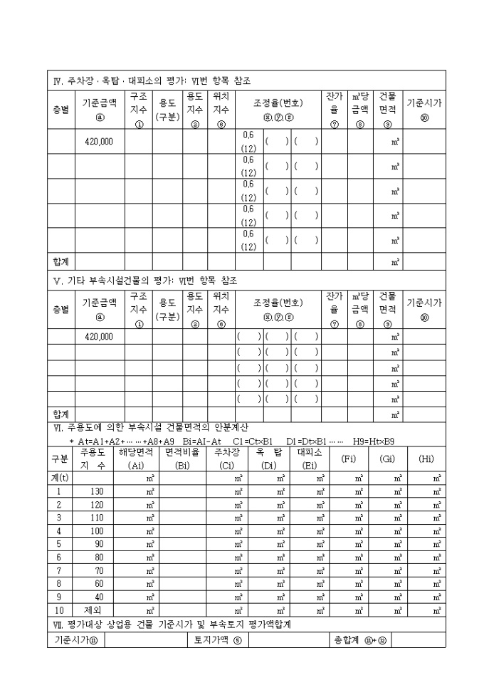 Ⅵ. 주용도에 의한 부속시설 건물면적의 안분계산