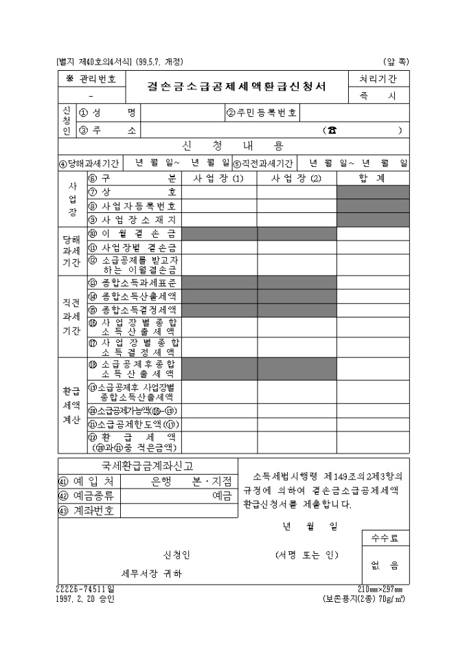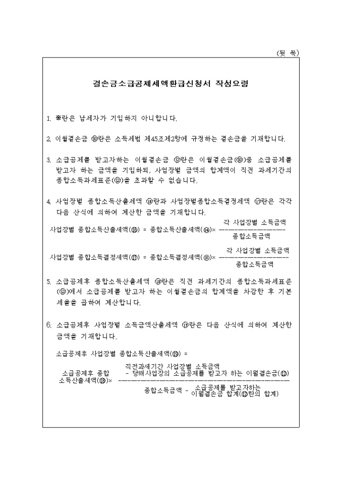 9,000원/월소득세법시행령 제149조의2제3항의 규정에 의하여 결손금소급공제세액 환급신청할때 사용하는 양식입니다.
