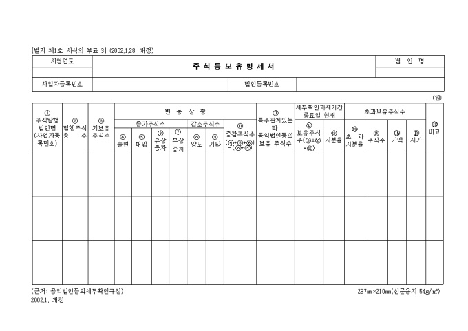 제1호의부표3 주식등보유명세서(2002.1.28. 개정)