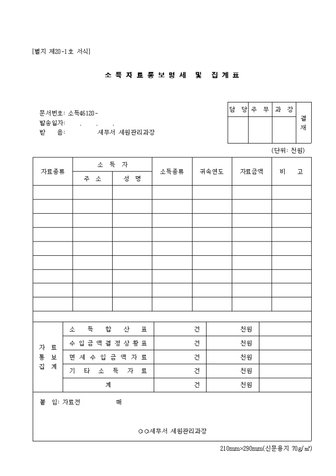 제20.1호 소득자료통보명세 및 집계표