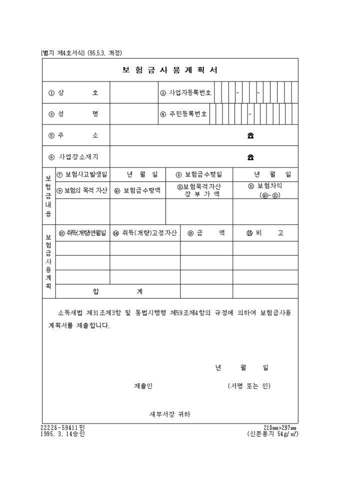9,000원/월소득세법 제31조제3항 및 동법시행령 제59조제4항의 규정에 의하여 보험금사용계획을 제출할때 사용합니다.