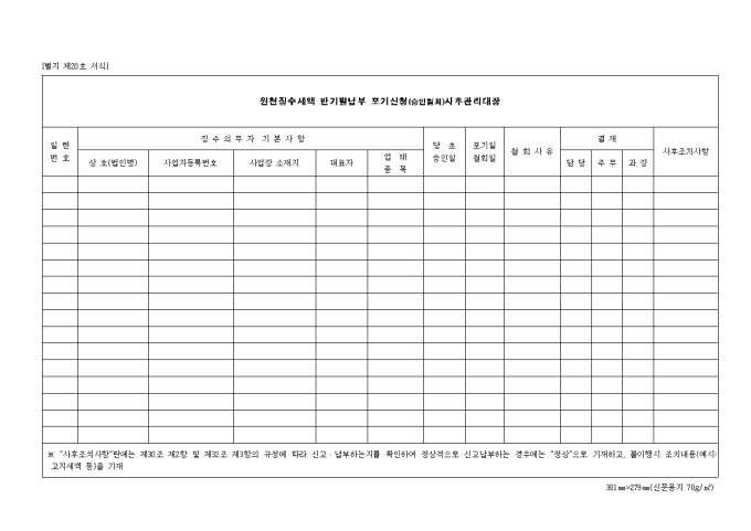 제20호 원천징수세액 반기별납부포기신청(승인철회)사후관리대장