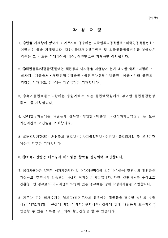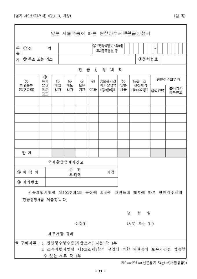 9,000원/월소득세법시행령 제102조의2의 규정에 의하여 채권등의 매도에 따른 원천징수세액 환급신청할때 사용합니다.