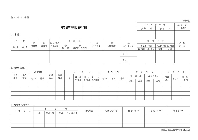 9,000원/월제21호 외국인투자기업관리대장
