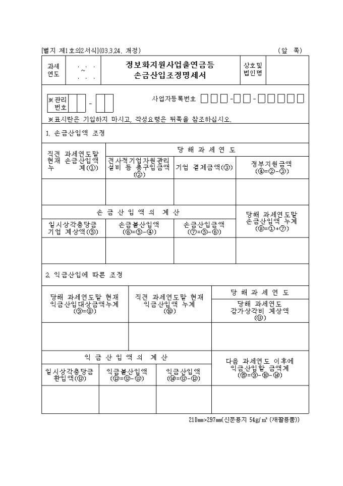 제1호의2 정보화지원사업출연금등손금산입조정명세서(2003.3.24. 개정)