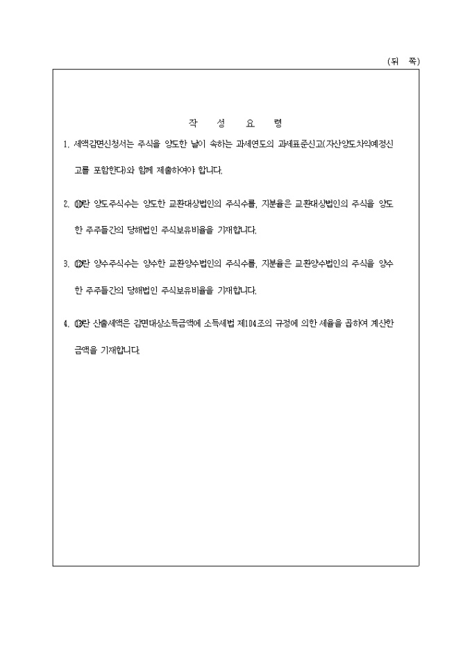 조세특례제한법시행령 제43조제16항의 규정에 의하여 세액감면을 신청할때 사용합니다.