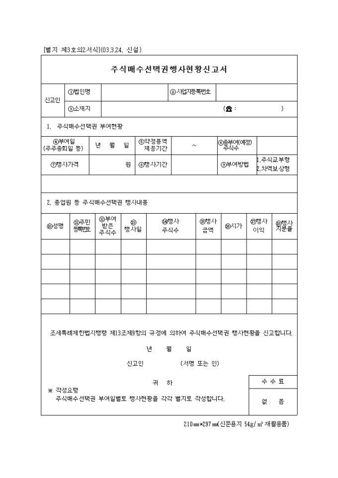 9,000원/월조세특례제한법시행령 제13조제9항의 규정에 의하여 주식매수선택권 행사현황을 신고할때 사용합니다.