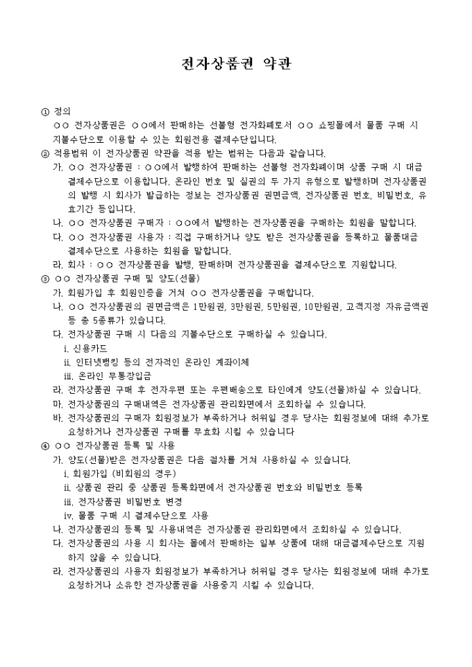 9,000원/월아래의 항목으로 된 전자상품권 약관입니다.
