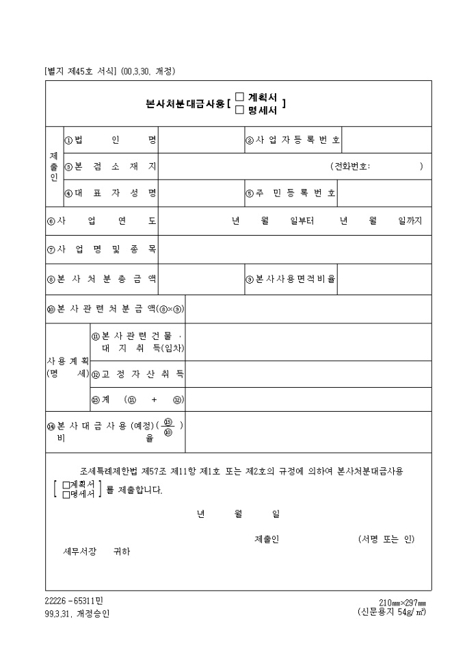 9,000원/월조세특례제한법 제57조 제11항 제1호 또는 제2호의 규정에 의하여 본사처분대금사용 계획 및 명세내역을 기록합니다.
