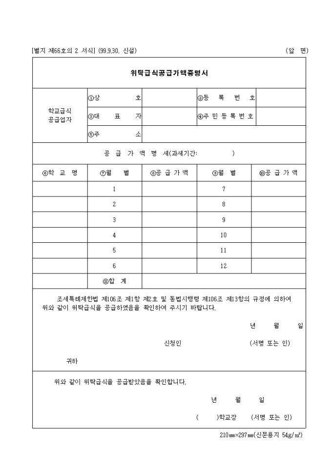 위탁급식을 공급하였음을 확인요청하는 양식입니다.