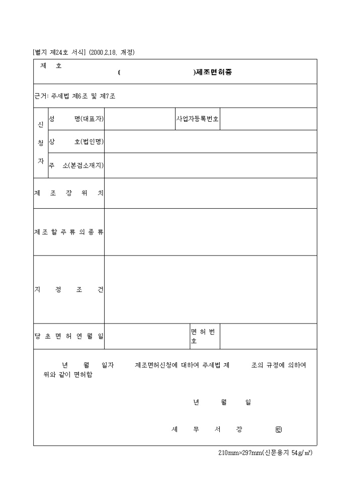 제24호 제조면허증(2000.2.18. 개정)