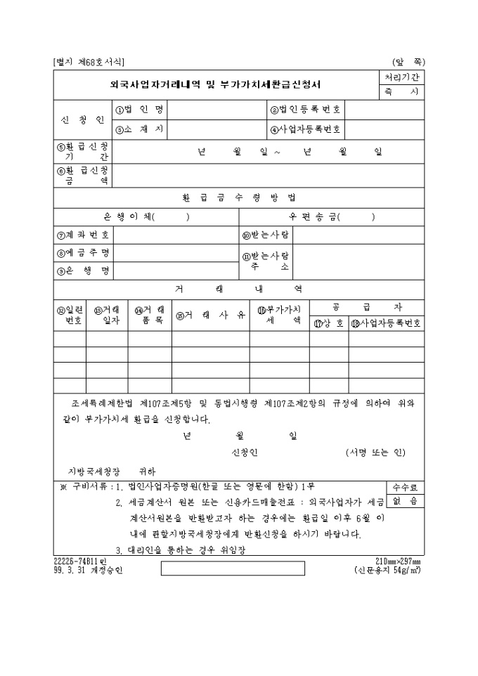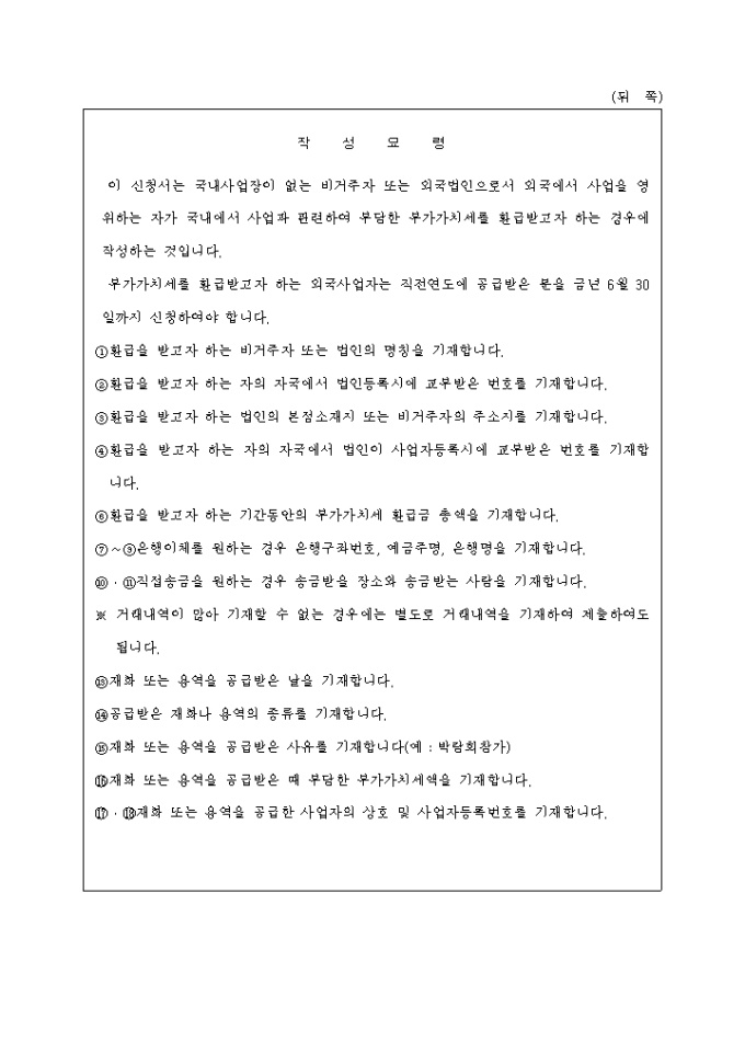 9,000원/월조세특례제한법 제107조제5항 및 동법시행령 제107조제2항의 규정에 의하여 부가가치세 환급을 신청할때 사용합니다.