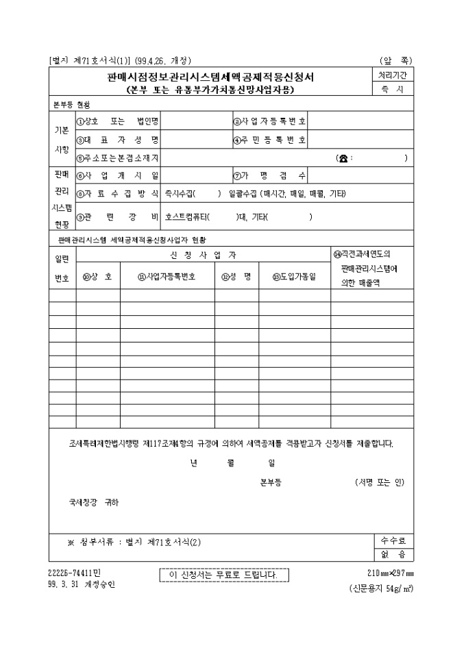 9,000원/월조세특례제한법시행령 제117조제4항의 규정에 의하여 세액공제를 적용받고자 신청할때 사용합니다.