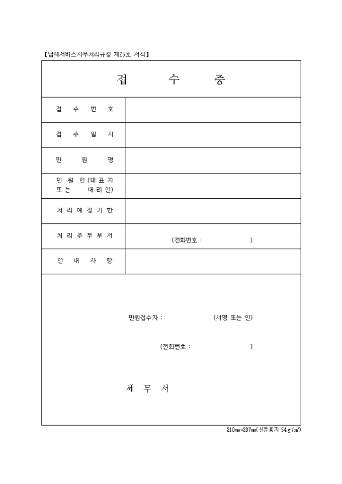 【납세서비스사무처리규정 제25호 접수증 서식】