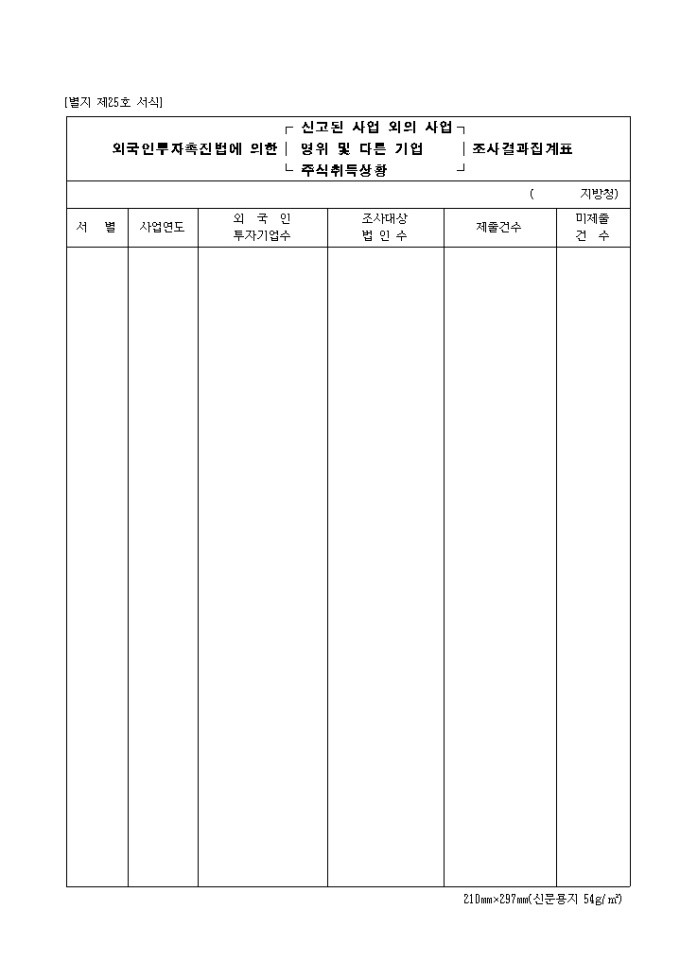 외국인투자촉진법에 의한(신고된 사업 외의 사업영위 및 다른 기업 주식취득상황)조사상황표(제26호)