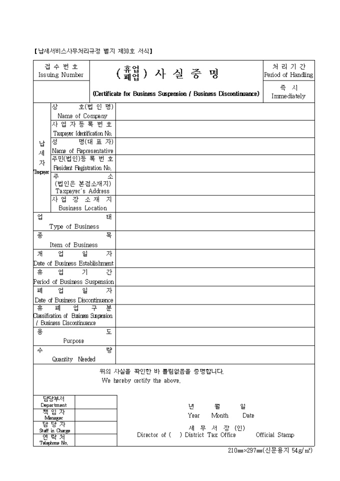 제30호 휴업폐업사실증명(영문)