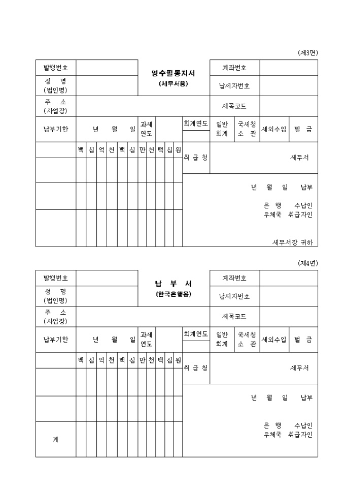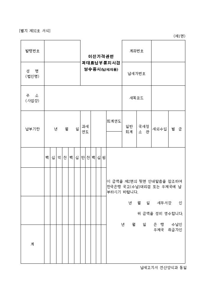 9,000원/월제32호 이전가격관련 과태료납부통지서 겸 영수증서