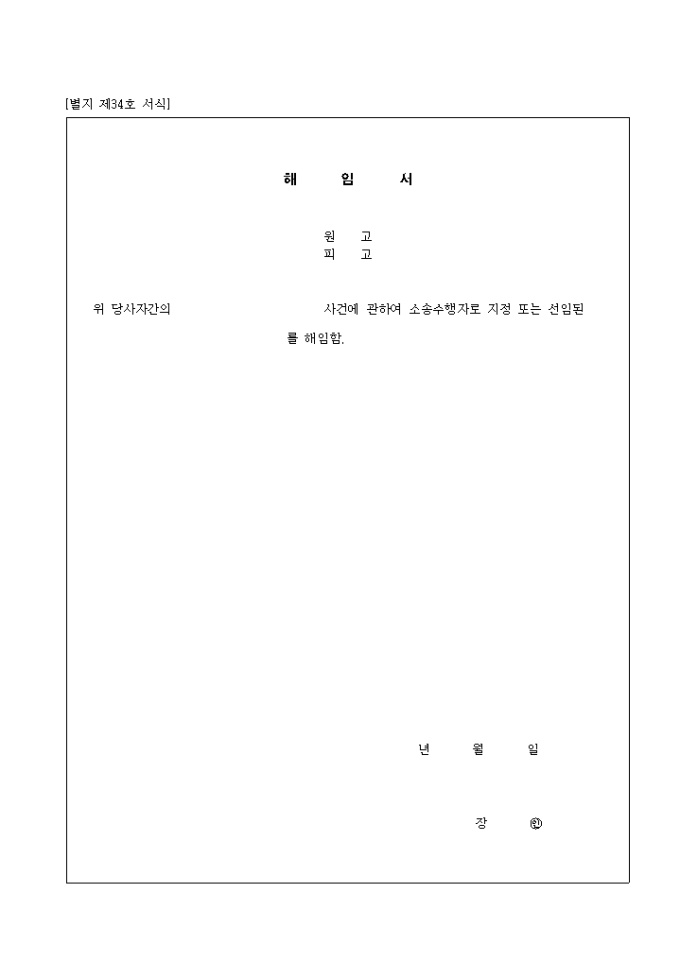 원고 피고 간의 사건에 관하여 소송수행자로 지정 또는 선임된 를 해임함.