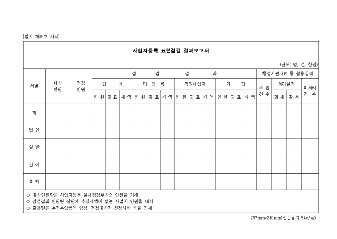 사업자등록표본점검결과 보고서(제35호 서식)
