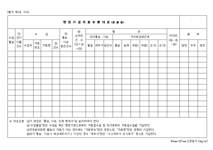 9,000원/월제3호 행정기관자료수불대장(총괄용)