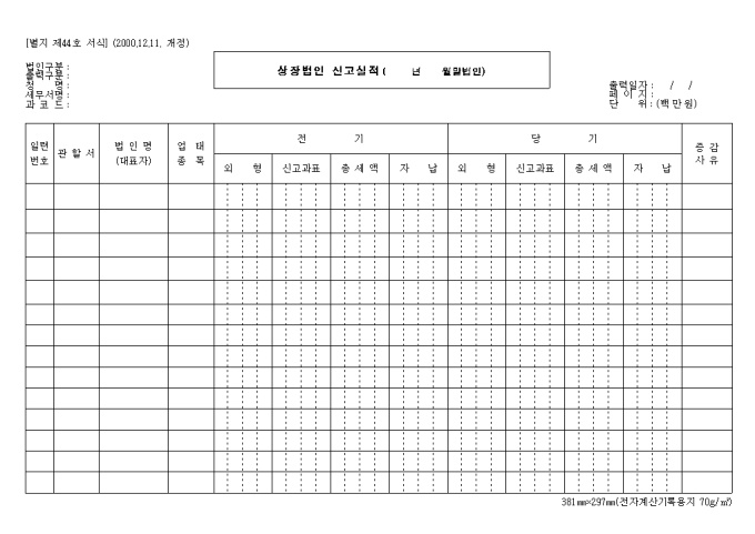 제44호 상장법인 신고실적(년 월말법인)(2000.12.11. 개정)