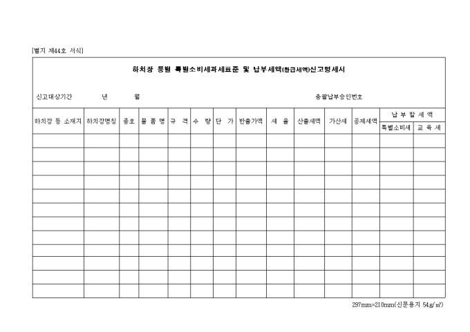 제44호 하치장 등별 특별소비세과세표준 및 납부세액(환급세액)신고명세서