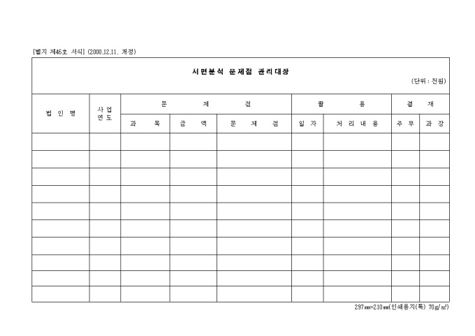 9,000원/월제46호 서면분석 문제점관리대장 (2000.12.11. 개정)