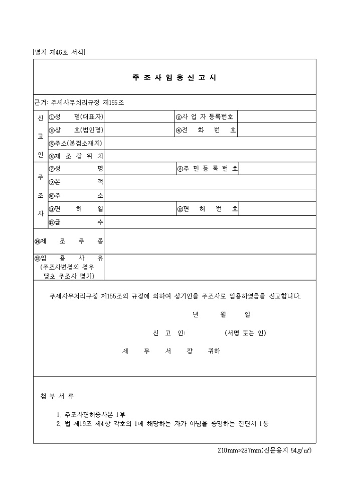 제46호 주조사임용신고서