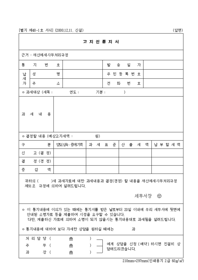 제48-1호 고지전통지서(2000.12.11. 신설)