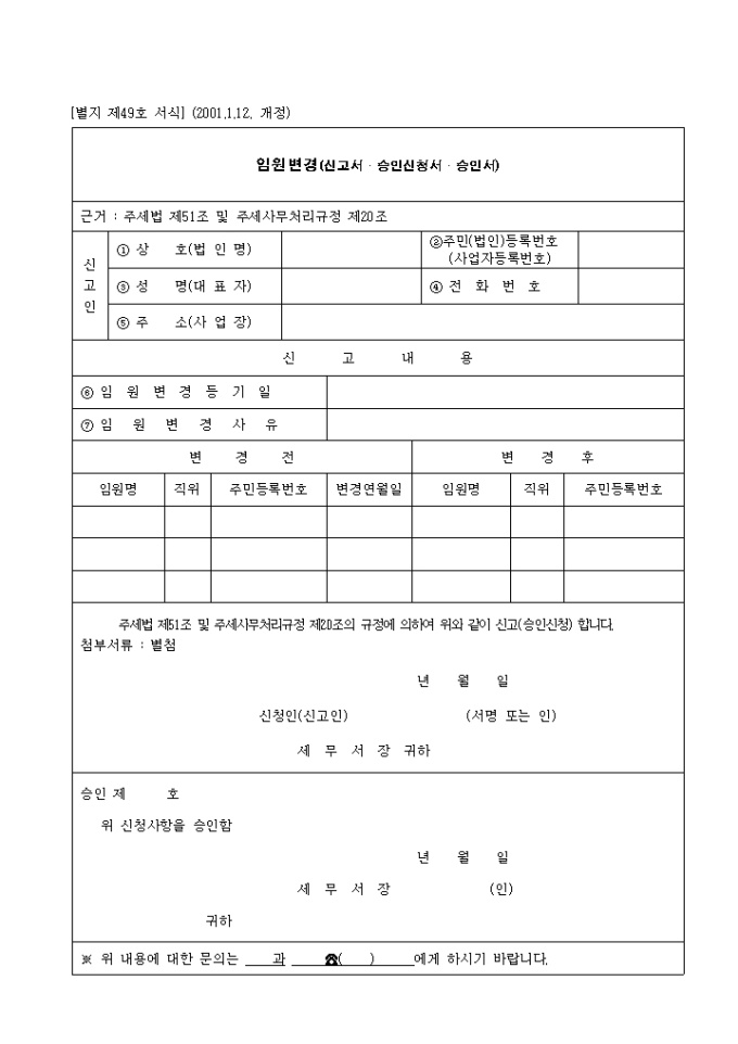 제49호 주주.임원(상호)변경(신고서.승인신청서.승인서)(2001.1.12. 개정)