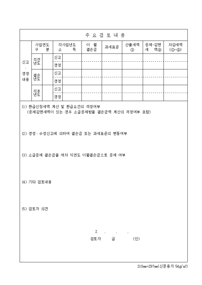 소급공제 법인세 환급세액 결정 및 경정 결의서(제54호)(2000.12.11. 개정)