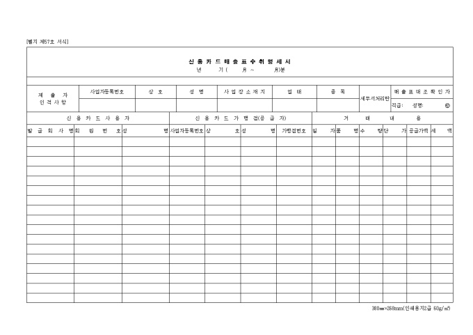 제출자 인적사항 신용카드 사용자 신용카드 가맹점등의 항목을 기입하여 작성합니다.