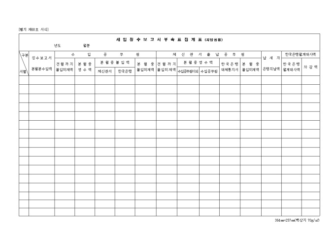 세입징수 보고서부속표집계표(지방청용)(제68호 서식)