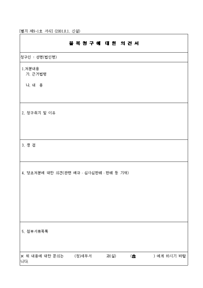 9,000원/월제6호 불복청구에 대한 의견서 (2001.8.1. 신설)