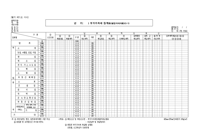 9,000원/월제71호 부가가치세집계표(일반과세자용)