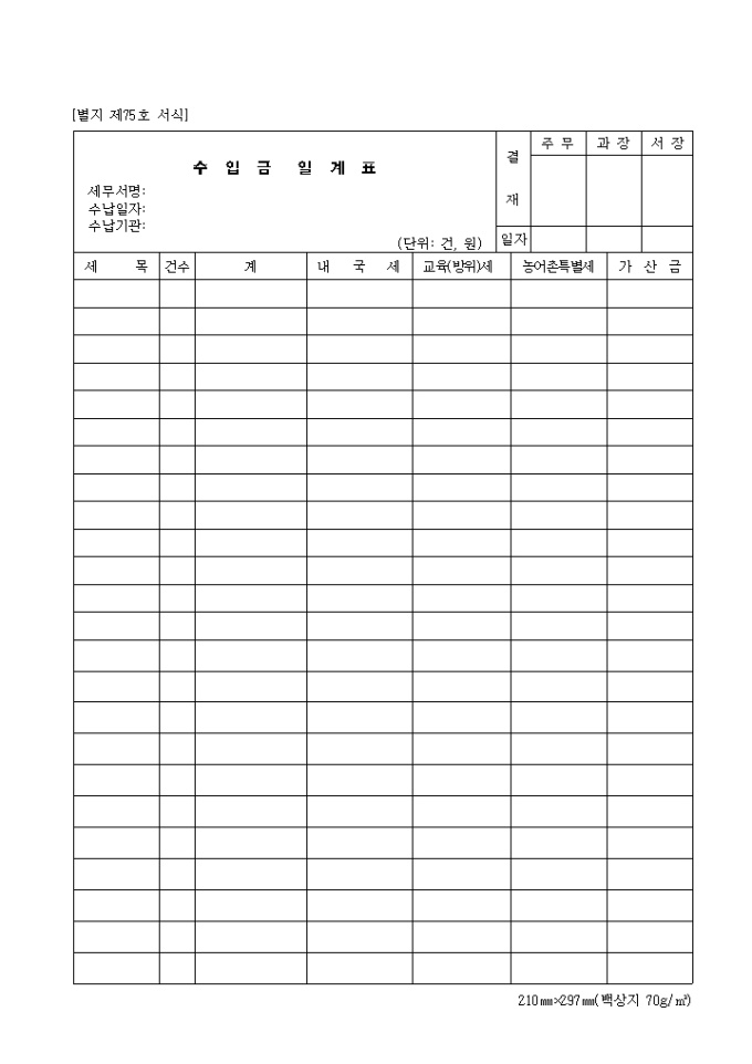 수입금 일계표 양식입니다.