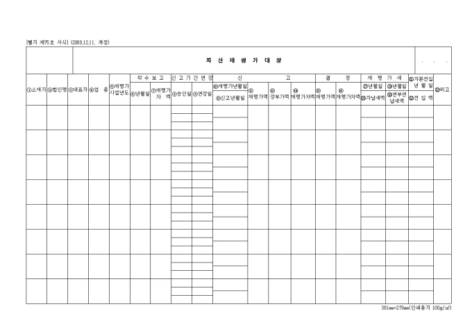 9,000원/월제75호 자산재평가대장 (2000.12.11. 개정)