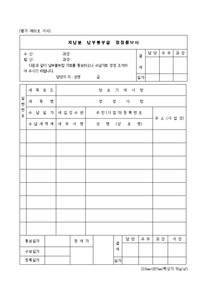 제83호 자납분 납부불부합 정정통보서