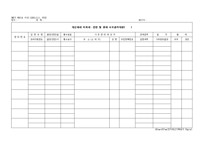 제83호 재산제세비과세.감면 및 공제 사후관리대장(2000.12.11. 개정)
