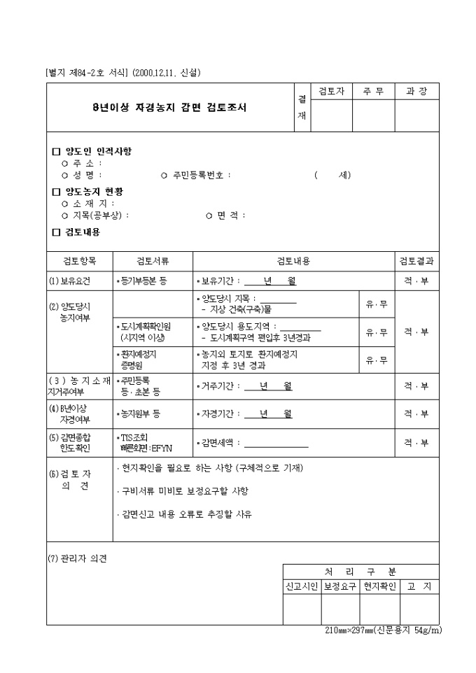 제84-2호 8년 이상 자경농지 감면검토조서(2000.12.11. 신설)