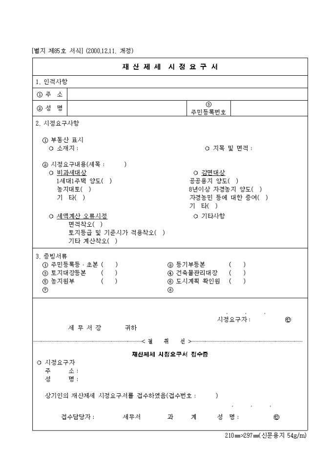 제85호 재산제세시정요구서(2000.12.11. 개정)